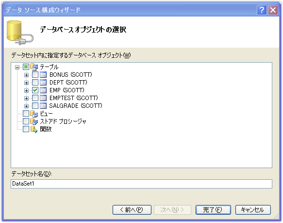 「データベースオブジェクトの選択」