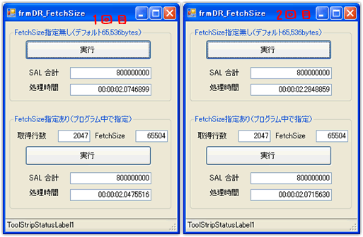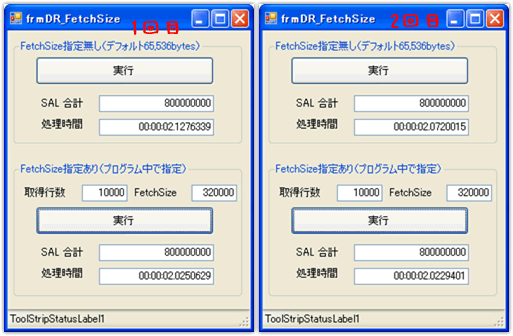 具体的には、1回のデータベース・ラウンドトリップで取り出したデータをキャッシュするためのメモリサイズをFetchSizeプロパティにセットして、複数の行をキャッシュ出来るようにしデータベース・ラウンドトリップを少なくするという事になります。