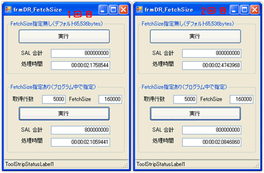 どれもFetchSizeを明示的に指定した方が速度がわずかに上回っています。