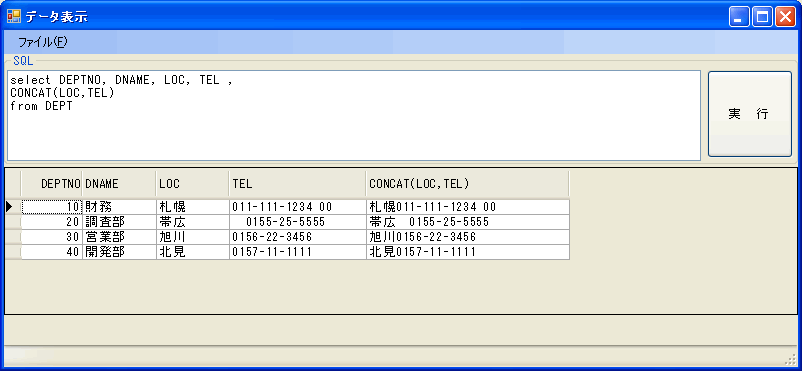 select DEPTNO, DNAME, LOC, TEL , CONCAT(LOC,TEL) from DEPT