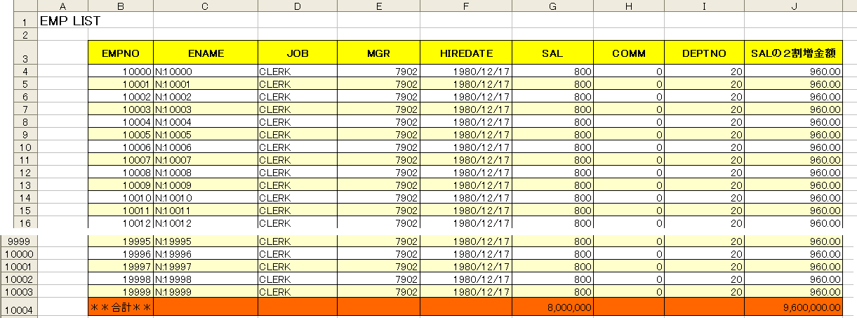 ODP.NETを利用して、EMP表の一覧Excelファイルを作成します。