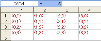 Posクラスで、A1セルを(0,0)として座標でセル指定を行います。ExcelのR1C1参照形式といった方がピンと来るかもしれません。